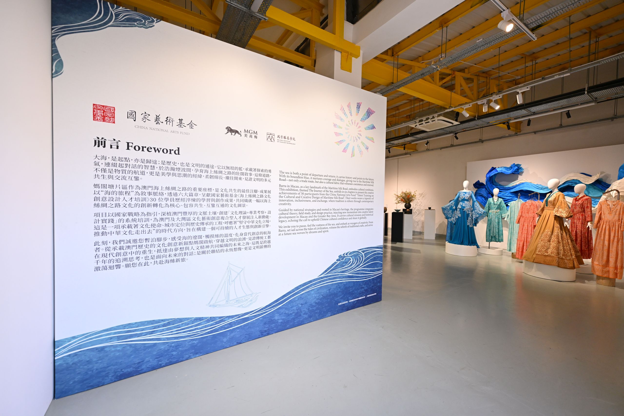Organized by MGM, the “2025 China National Arts Fund Project | Talent Training on the Cultural and Creative Design of Maritime Silk Road” Exhibition showcased 30 multidisciplinary designs of cultural and creative designs of fashion design, painting, sculpture, and multimedia installations etc. at the Macao Barra District (former Barra Slaughterhouse site). Structured around 6 thematic chapters, the exhibition systematically showcases diverse explorations of the Maritime Silk Road through cultural interpretation, design translation, and contemporary artistic expression.