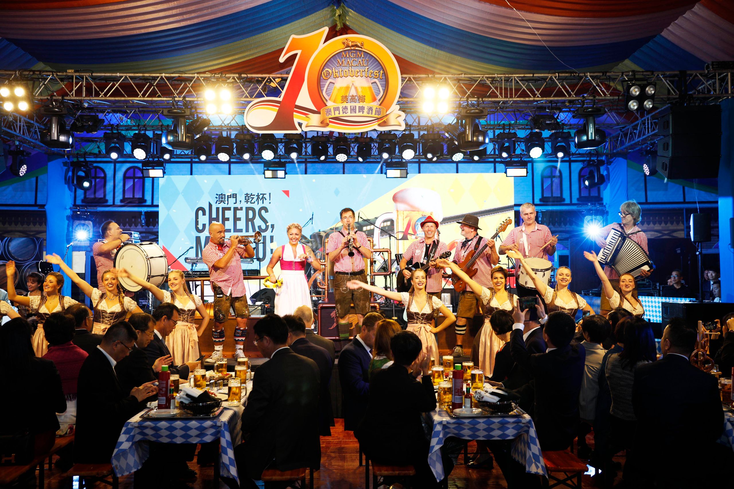 For the tenth year, MGM is hosting its signature citywide event in cooperation with the Consulate General of the Federal Republic of Germany in Hong Kong and Macao and the German Macau Business Association, with the continued support of the Macao Government Tourism Office. The event was officially kicked off with a beer keg tapping by Dr. Alexis Tam, Secretary for Social Affairs and Culture of the Macao SAR. Other honorable guests were Mr. Yao Jian, Deputy Director of Liaison Office of the Central People’s Government in the Macao SAR; Mr. Liu Bin, Director-General of Economic Affairs Department of Liaison Office of the Central People’s Government in the Macao SAR; Mr. Li Yongpeng, Director of Department of General Affairs Office of the Commissioner of the Ministry of Foreign Affairs in Macau SAR; Mr. David Schmidt, Deputy Consul General of Federal Republic of Germany in Hong Kong and Macao; Ms. Maria Helena De Senna Fernandes, Director of Macao Government Tourism Office; Mr. Hoi Io Meng, Deputy Director of Macao Government Tourism Office; Mr. Anthony Leong, Deputy Director of Gaming Inspection and Coordination Bureau; Mr. Tony Un, Chairman of German Macau Business Association; Ms. Pansy Ho, Co-Chairperson & Executive Director of MGM China Holdings Limited; and Mr. Grant Bowie, Chief Executive Officer & Executive Director of MGM China Holdings Limited.