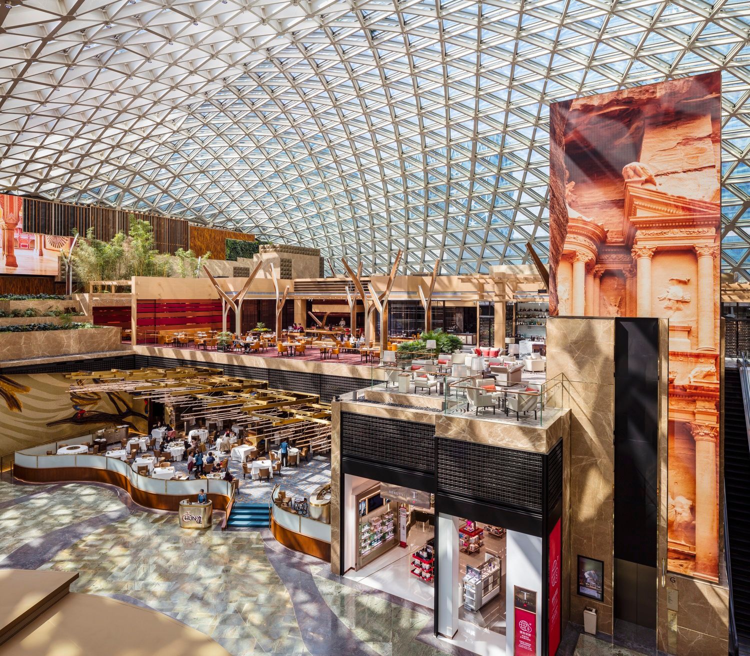 MGM COTAI is the latest integrated resort of MGM in China. Designed as the “jewelry box” of Cotai, it offers approximately 1,400 hotel rooms and suites, Asia’s first dynamic theater, meeting space, high end spa, retail offerings and food and beverage outlets as well as the first international Mansion at MGM for the ultimate luxury experience. The Spectacle at MGM COTAI becomes the record holder of the largest free-span gridshell glazed roof (self-supporting) on January 19, 2019, making it the first architectural and structural GUINNESS WORLD RECORDS™ title for Macau, China. MGM COTAI is being developed to drive greater product diversification and bring more advanced and innovative forms of entertainment to Macau as it grows as a global tourist destination. MGM COTAI is the largest property and the first mega-size complex project in Macau to achieve the China Green Building Design Label Three-Star Certification.