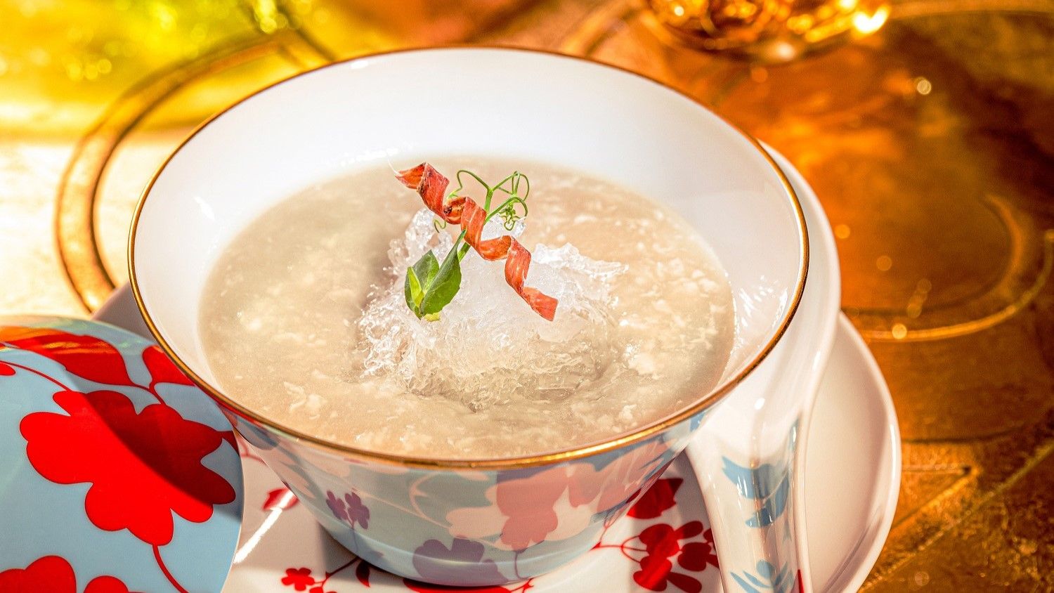 Highlights of the menu include Crispy fried chicken skin with shrimp mousse and salted fish flakes, a Lingnan handcrafted classic well-known as the “deconstructed chicken”, which is reinvented by Chef Homan to a whole new level at Imperial Court. Swapping steamed chicken skin to crunchy crispy-fried top shell offsets the shrimp mousse made of three types of shrimps – Japanese Obsiblue prawn, Vietnamese white shrimp and Kuruma prawn from Pearl River Delta Region, a thoughtful combination that gives the shrimp mousse an al dente texture and a vivid taste profile full of sweetness and umami. Finishing the refined creation with freeze-dried salted fish flakes, a specialty ingredient unique to Macau, to enrich the overall palate, this contrasting yet heavenly balanced delicacy is bespoken for Lingnan gastronomy. Moreover, its net-inspired plating also pays homage to the historic past of Macau as a fishing village.