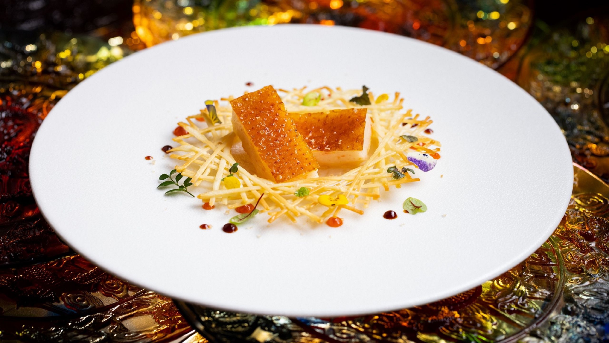 Listed on the SCMP 100 Top Tables once again, Imperial Court serves enticing classic Lingnan culinary fare with a modern, reinvented twist. The grand dining room of restaurant is home to a signature ornamental column featuring a masterful craving of a dragon, which coheres with the exquisite Liuli (traditional colored glaze used by ancient Chinese royal families) tableware. While the menu pays tributes to the essence of Lingnan culinary culture, which are seasonality, balanced seasoning and focus on the original flavors of ingredients, Chef de Cuisine Homan Tsui also values creativity in his practice at Imperial Court, pushing him to continue expanding horizons of gastronomy enthusiasts. Taste the gem of Lingnan cuisine with the Crispy fried chicken skin with shrimp mousse and salted fish flakes, a handcrafted classic reinvented by Chef Homan to a whole new level.