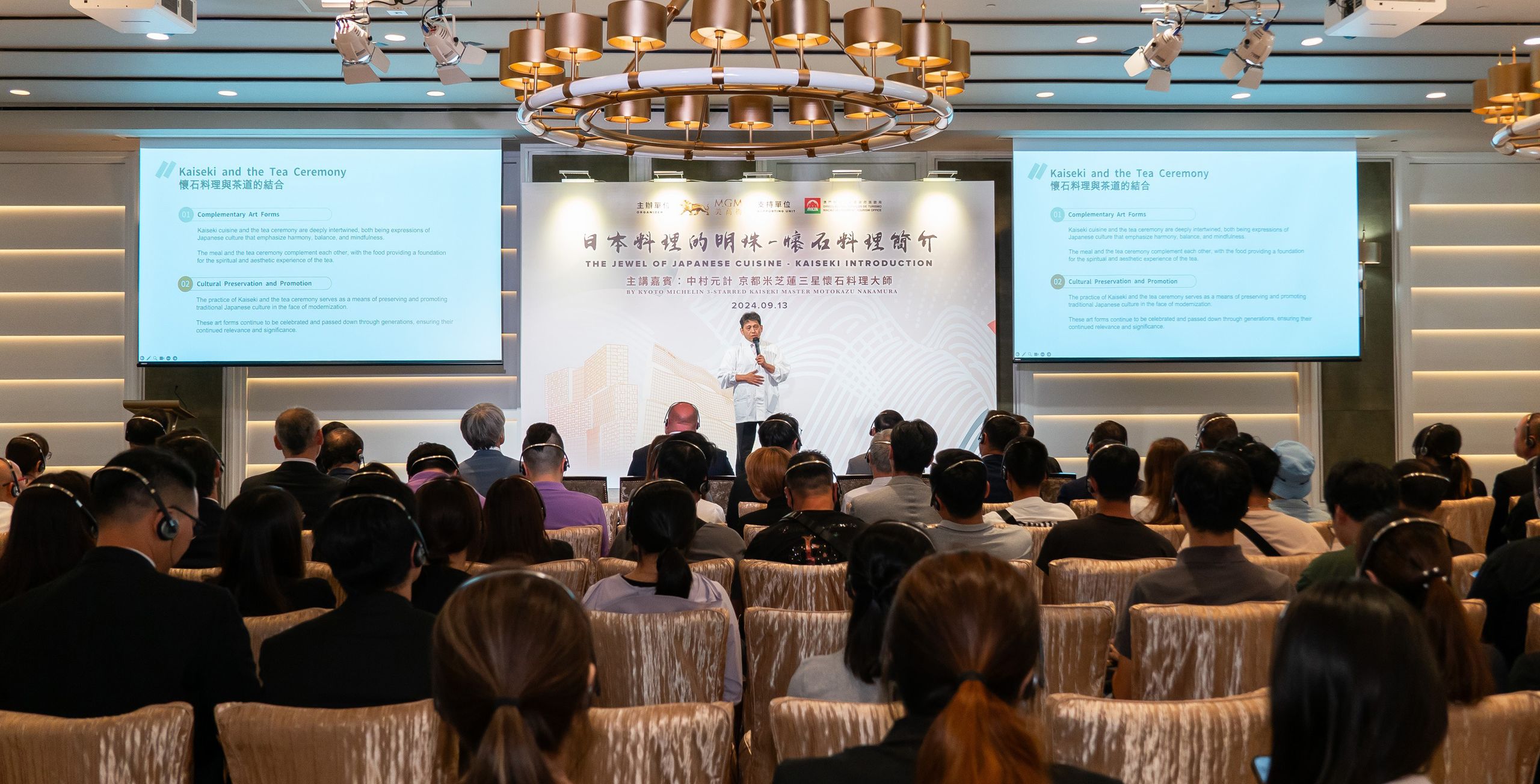 During the “Seminar on the Jewel of Japanese Cuisine - Kaiseki Introduction” on September 13, Chef Nakamura shared his expertise at The Vista of MGM COTAI with over 180 representatives from local culinary industry and students from the city's universities. He shared his commitment to preserving his family's culinary heritage, as well as the philosophy and artistry behind Kaiseki cuisine.