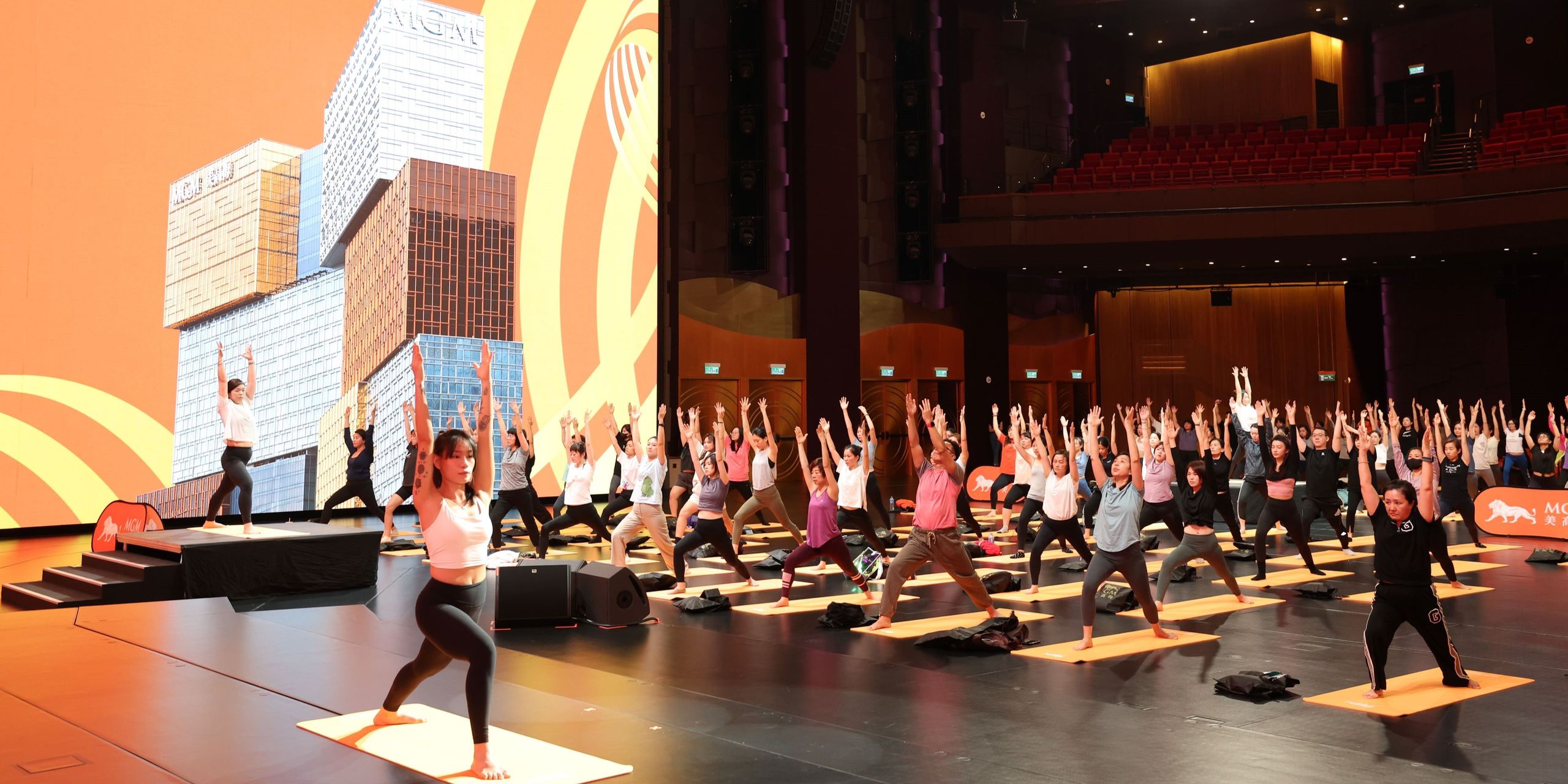「獅展動力 擁抱健康」員工健康推廣系列活動於10月至11月期間為過萬名團隊成員舉辦多個嶄新體驗,鼓勵團隊成員強身健體。其中,美高梅破天荒將美高梅劇院改造成全城最大的瑜珈館,邀請了200多名來自工聯、街總和婦聯的會員、以及美高梅團隊成員參與「瑜珈初體驗」,在本地資深瑜珈導師的專業指導下沉浸式體驗瑜珈運動,參加者年齡層相當廣泛,上至87歲,下至6歲,活動中最高齡,來自工聯的黃婆婆表示:「我學了瑜珈一年,運動讓我保持身心健康,這次可以與200多位瑜珈愛好者聚首一堂感受運動帶來的樂趣,是很珍貴和特別的體驗,我會繼續努力鍛鍊,活出健康每一天。」